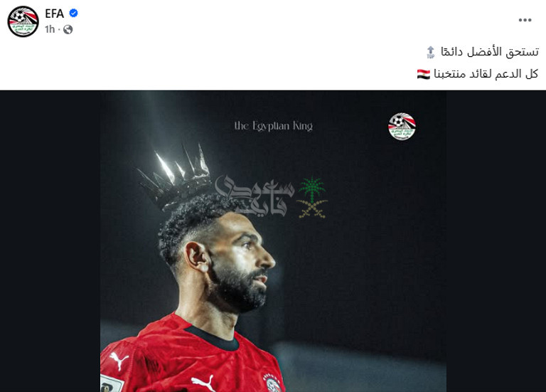 نشر الحساب الرسمي لاتحاد الكرة عبر منصة إكس صورة مميزة لمحمد صلاح، وُضع فوق رأسه تاج رمزي، مع تعليق: “تستحق الأفضل دائماً، كل الدعم لقائد منتخبنا”