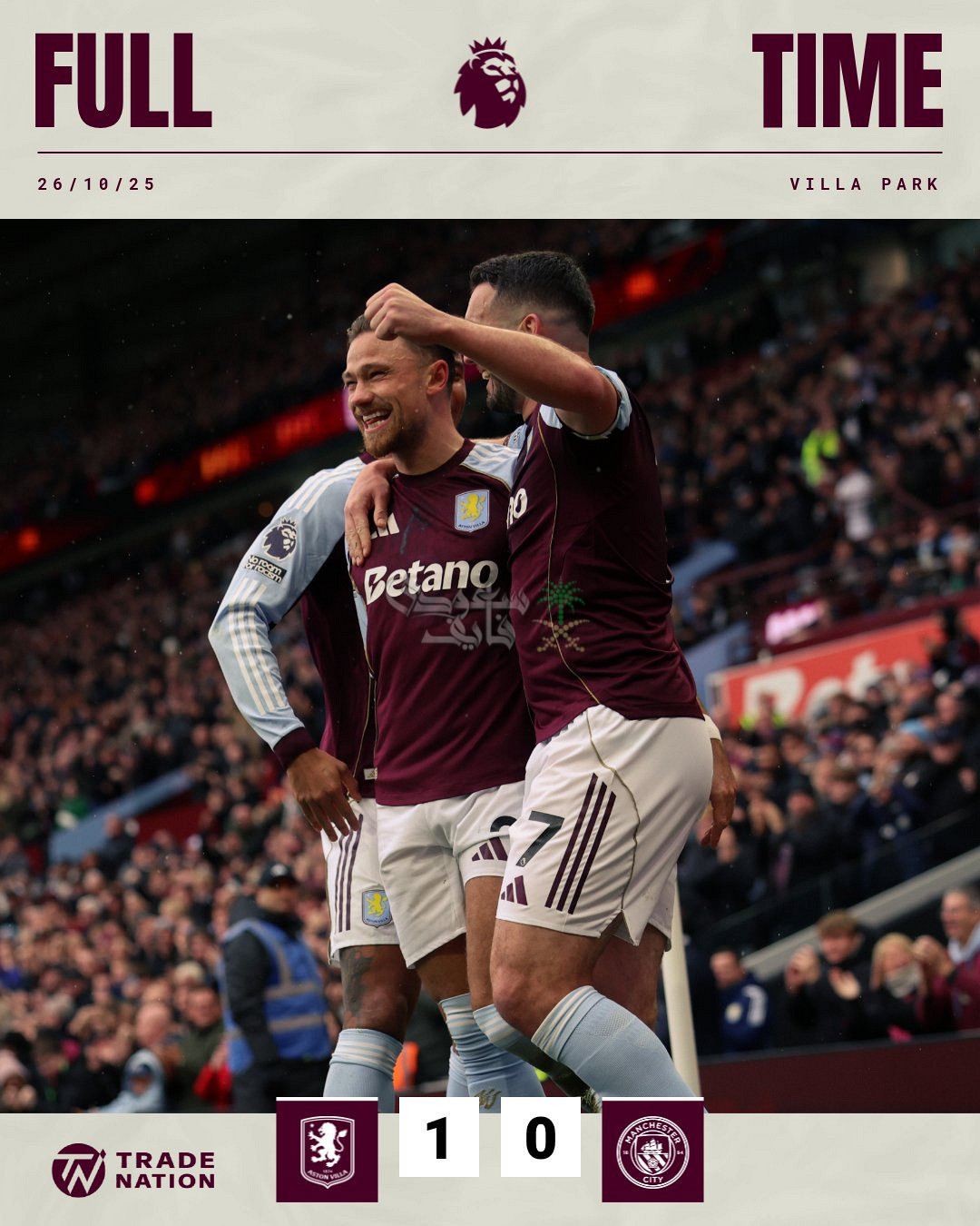 فيما يخص نتيجة مباراة مانشستر سيتي ضد أستون فيلا فقد انتهت المواجهة على وقع خسارة كتيبة بيب جوارديولا بنتيجة هدف واحد مقابل لا شيء.