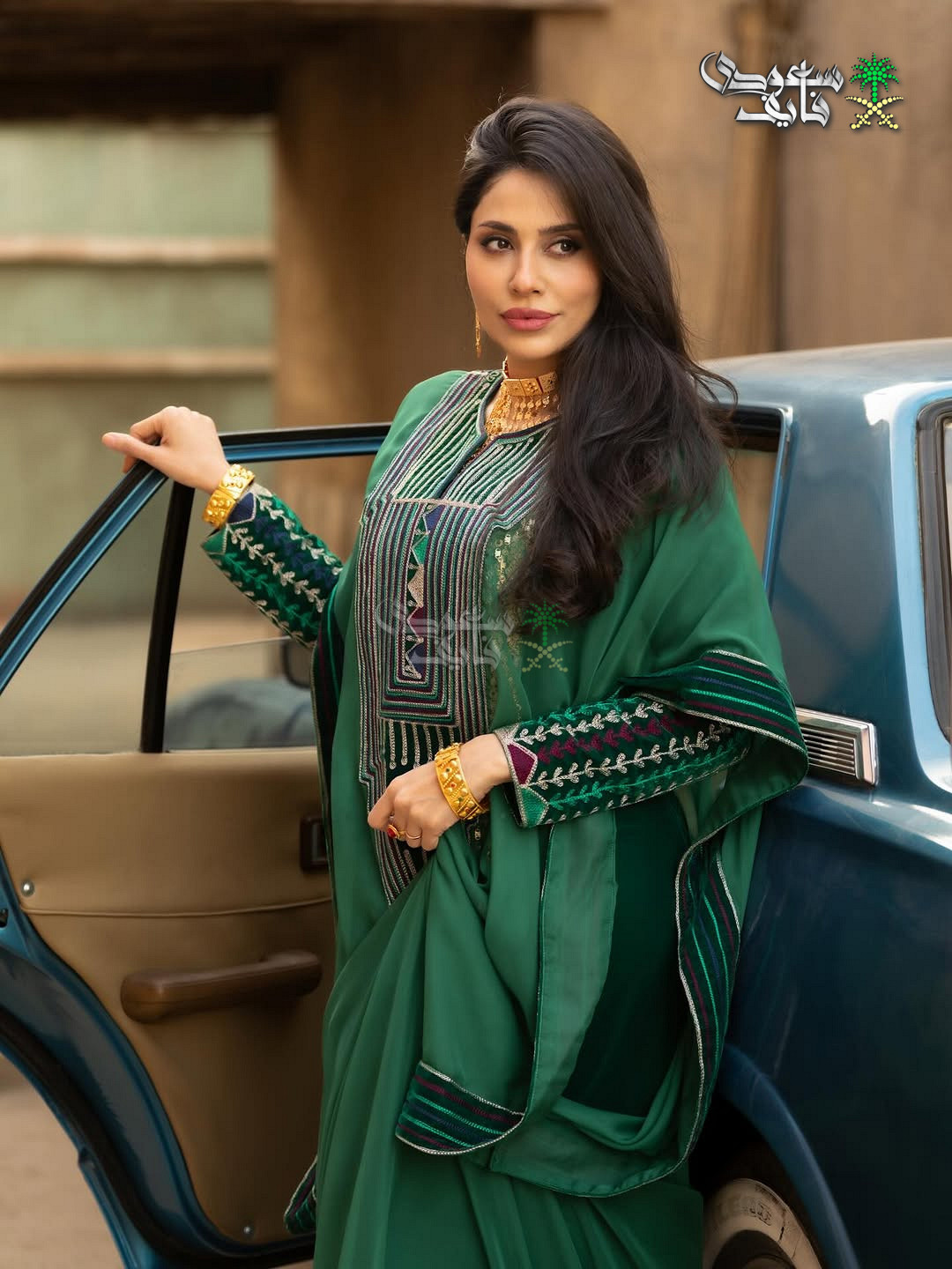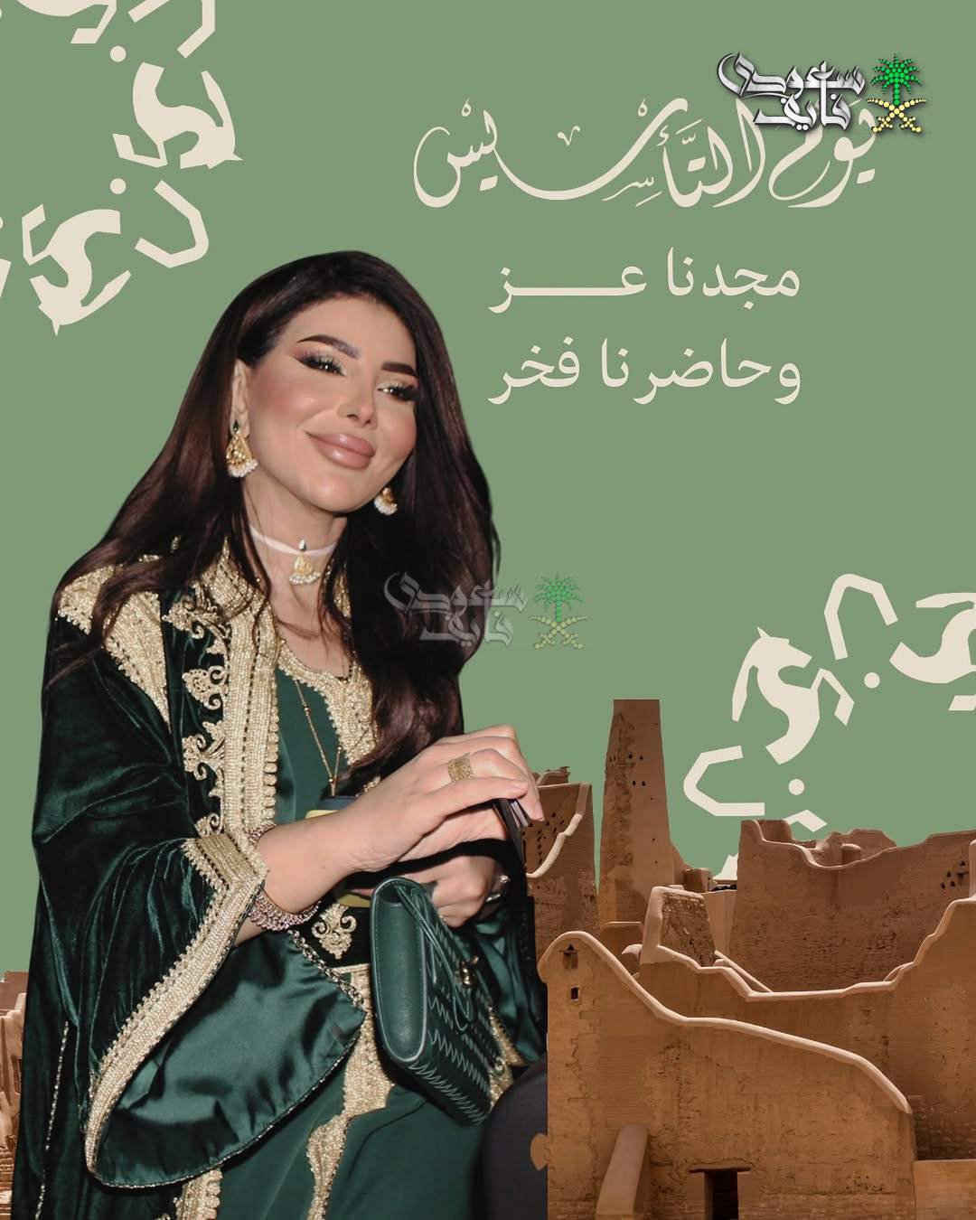 ونشرت إلهام علي جلسة تصوير بفستان أخضر احتفاءً بالمناسبة، مشيرة إلى أن يوم التأسيس يجسد جذورًا عميقة ومجدًا متواصلًا عبر ثلاثة قرون من العز.